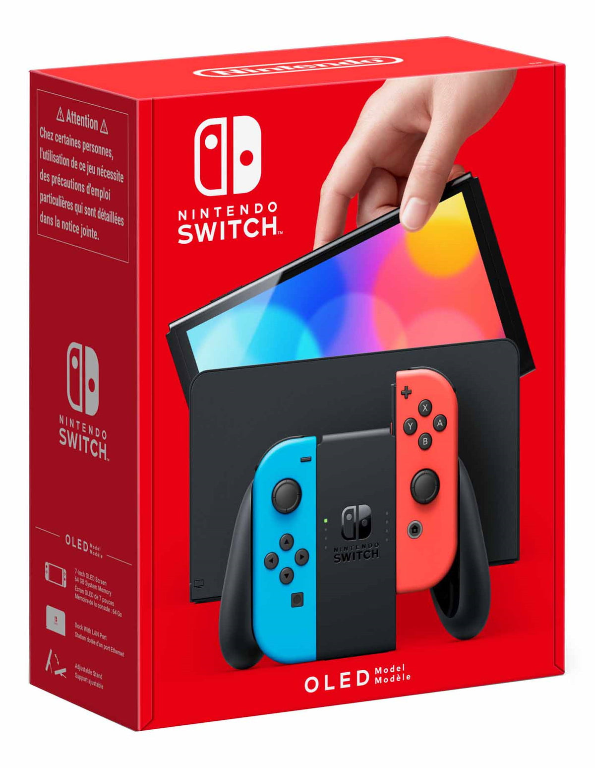 • Pick it up and play with the Joy-Con controllers attached. Nintendo Switch (OLED model) includes a vibrant 7-inch OLED screen with a slimmer bezel. The large screen's vivid colours and high contrast deliver a rich handheld and tabletop gaming experience, bringing games to life whether you're racing at top speed or squaring off against enemies.